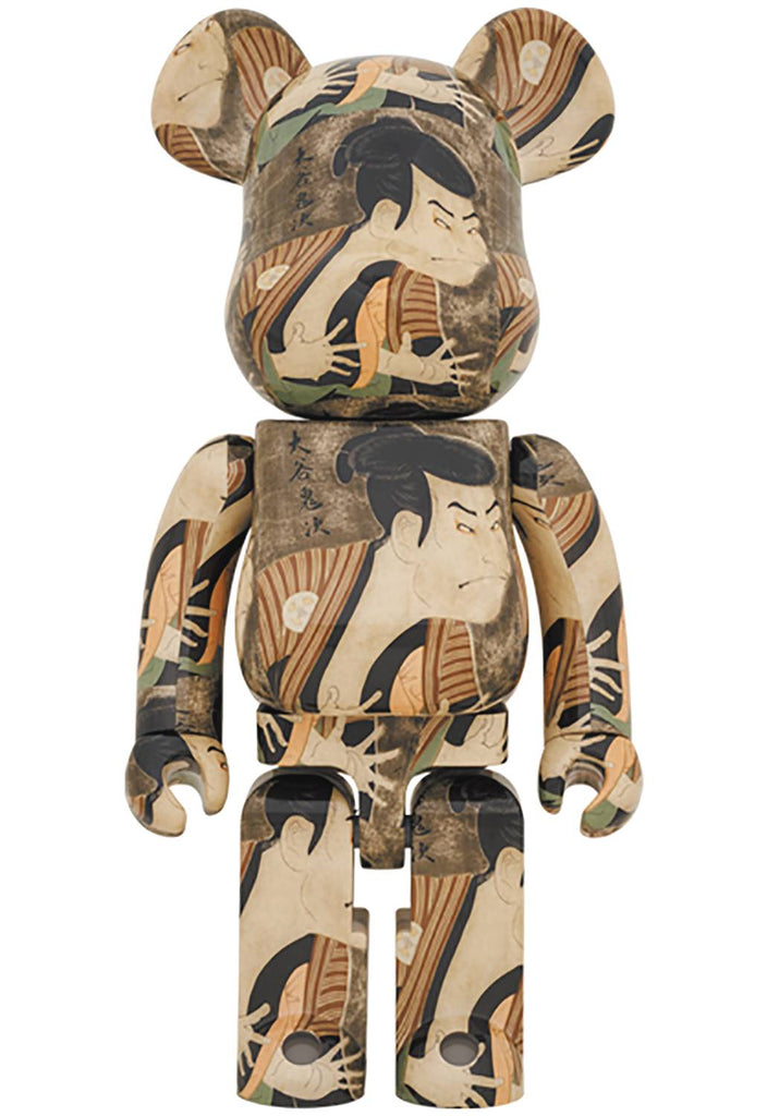 From MEDICOM Toy. This BE@RBRICK features an all over print of Kabuki Actor Otani Oniji III as Yakko Edobei by artist Toshusai Sharaku. Collect this design in a 2 pack of 100% and 400% sizes standing 2 3/4" and 11" tall respectively, or the 1000% scale that stands 28" tall.