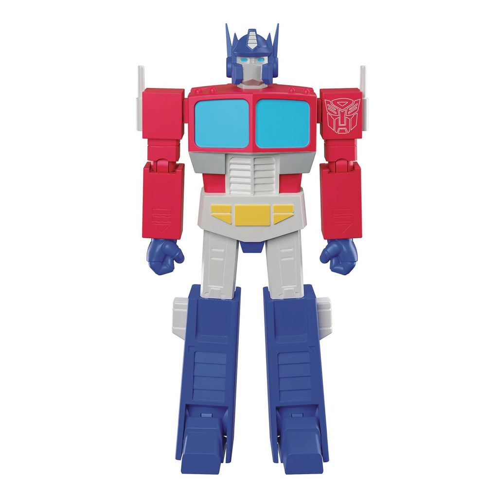 From Super 7. There is no better way to roll out a new collection of Transformers than with the leader of the Autobots, Optimus Prime! Based on his look from the original G1 cartoon, this 7" highly-articulated deluxe action figure is made-to-order and includes a variety of unique interchangeable parts, like his G1 toy-accurate head, his jetpack, a surfboard, and a basketball! Recreate Optimus Prime's basketball game from "The Master Builders" episode, catch a giant wave as seen in "The Ultimate Doom," or get him under control with Energon restraints as seen in "SOS Dinobots!" His amazing set of accessories also includes an Energon Axe, Matrix of Leadership, and Ion Blaster. Optimus Prime is accompanied by a miniature Spike Witwicky!