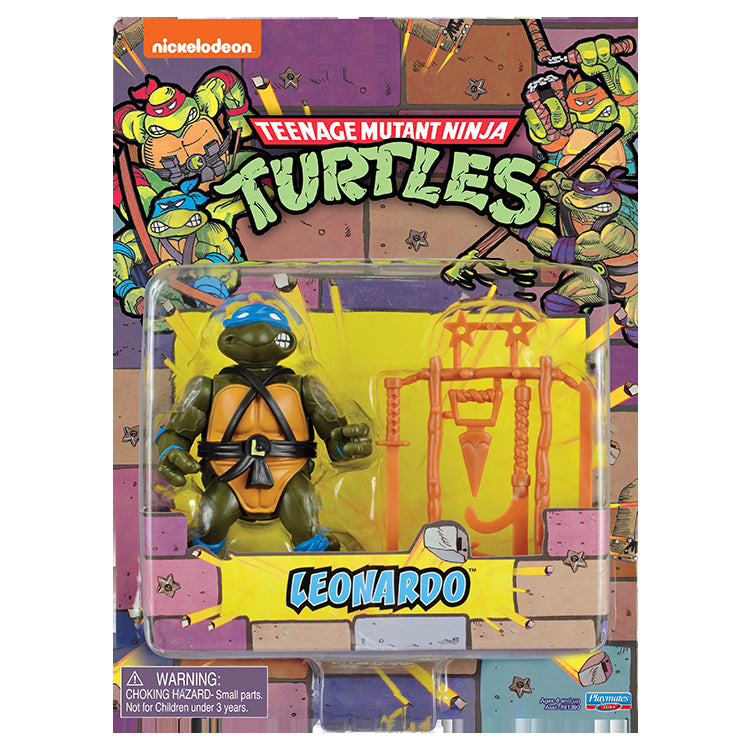 The figures in this 6-piece set feature original bodies with authentic decoration from the '80s action figures and oversized roto heads. The Turtles have their individual Bandana colors and include the letters designated on their belts and weapons rack. Each figure comes individually packed out in blister card with authentic class Turtles logo and graphics!