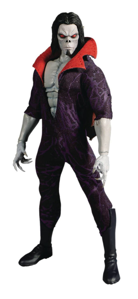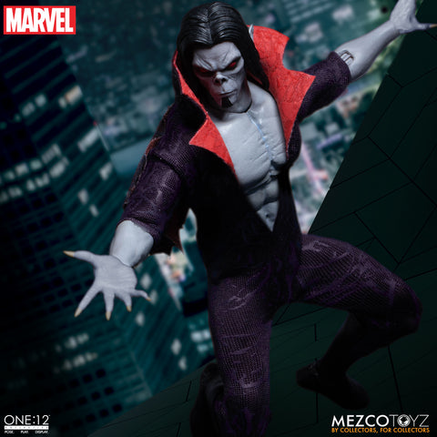 Morbius wears a fitted bodysuit with a winged cape and features three head portraits, capturing varying degrees of his grisly nature. The Nobel Prize-winning biochemist comes complete with a multilayer mobile science lab with a light-up function. The removable top layer holds science equipment such as a foldable microscope, handheld hematology analyzer, and removable test tube and beaker, while the bottom layer conceals weapons such as a dagger, customized handgun, and hammer. Each One:12 Collective Morbius figure is packaged in a collector friendly box, designed with collectors in mind.