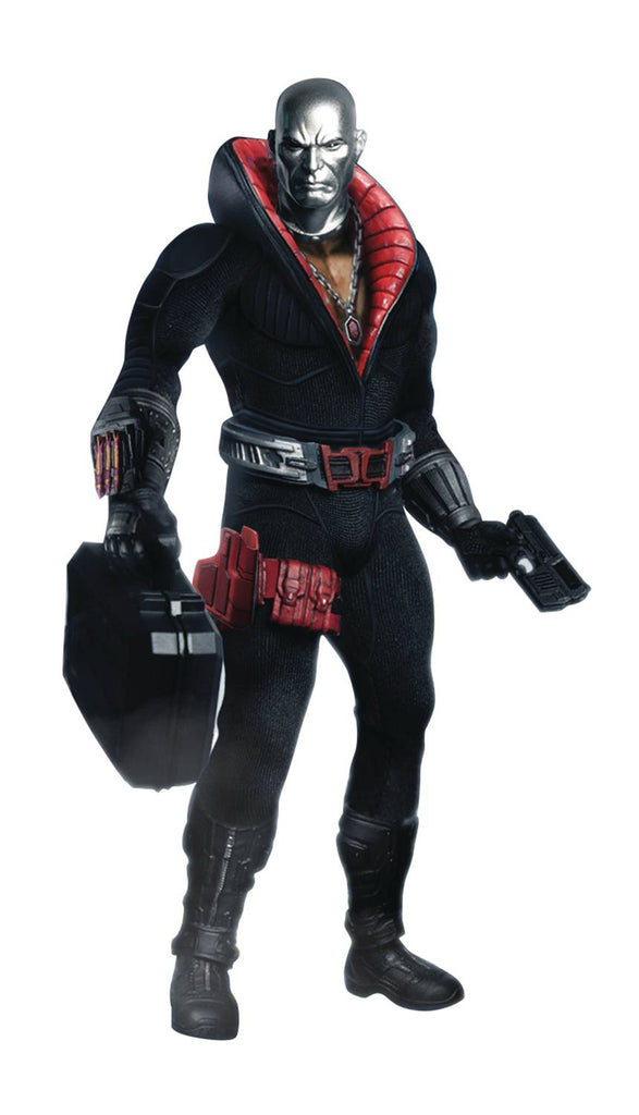 The One:12 Collective Destro is presented in his classic tactical outfit with tech enhancements, gauntlets with missile blasters, interchangeable thigh holsters, and combat boots.