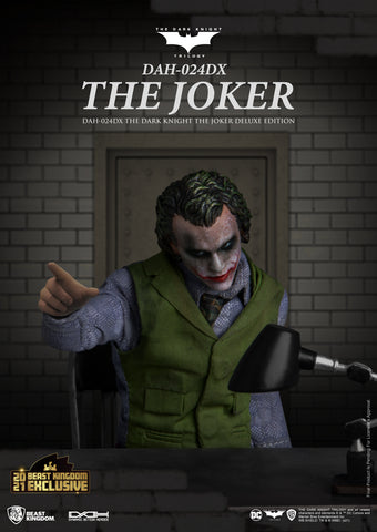 From Beast Kingdom. The classic Dark Knight movie, Heath Ledger's amazing portrayal of the Joker character was brought to life with such ferocity, it earned him an Oscar. The now-legendary interrogation scene between Batman and the Joker created such a dynamic exchange that it is forever etched into the memories of fans the world over. A simple exchange of words between the two quickly spirals into a deep and disturbing finale that sets the scene for the rest of the film and series as a whole. The crazed, maniacal look of the Joker with the washed-out makeup and worn-in clothes was a masterful setup that has yet to be topped.