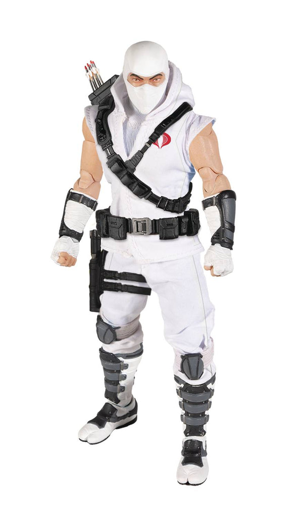 From Mezco Toys. Enter Storm Shadow, Cobra Commander's ninja bodyguard and latest addition to the One:12 Collective! The One:12 Collective Storm Shadow is outfitted in a short-sleeved karategi with Cobra insignia, shin guards, and tabi boots. His chest harness can hold 3 kunai in the front and his quiver in the back, and his thigh sheath can hold his nunchaku. Storm Shadow comes complete with two masked head portraits with different facial expressions, and 1 unmasked portrait. The elite Cobra ninja operative is prepared to infiltrate, equipped with multiple sai, multiple shuriken and shuriken-throwing FX, a bow with arrows, hand scythes, and more. Each One:12 Collective G.I. Joe: Storm Shadow figure is packaged in a collector friendly box, designed with collectors in mind.