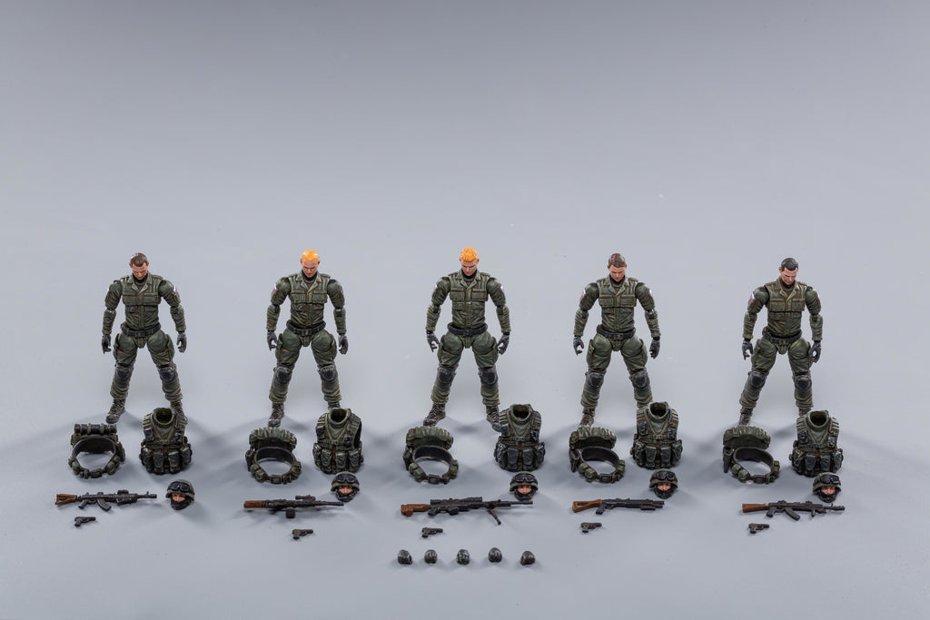Each figure is highly articulated and includes weapon accessories as well as several pieces of removable gear. Each soldier comes with 2 head sculpts, 2 pieces of gear, an extra set of hands, and 2 weapon accessories.