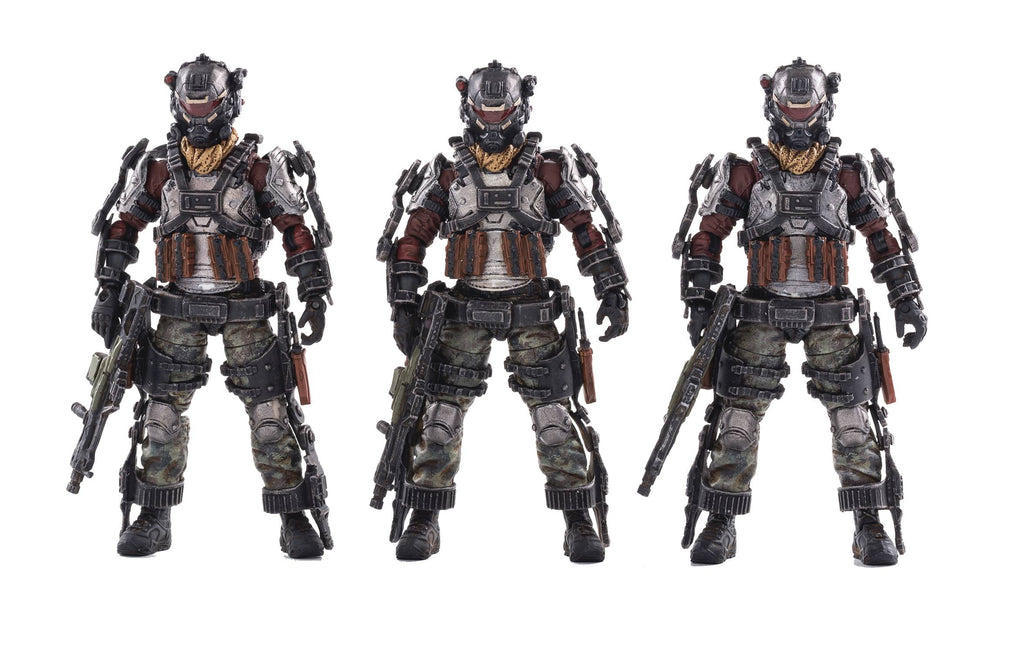 From Dark Source Trading. From Joy Toy, these Skeleton Force figures are incredibly detailed in 1/18 scale. Each Double Sickle Squad figure is highly articulated and includes weapon accessories as well as several pieces of removable armor. Also Included in the set are: a Large weapon, Shotgun, Pair of fists, Extra helmet, and Storage case.