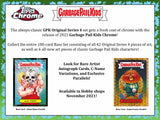 The always-classic Garbage Pail Kids Original Series 4 set gets a fresh coat of chrome with the release of 2021 Garbage Pail Kids Chrome! Collect the entire 100-card Base Set consisting of all 42 Original Series 4 pieces of art, as well as 6 all-new art pieces of classic Garbage Pail Kids characters! Look for Rare Artist Autograph Cards, C-Name Variations, and Exclusive Parallels!