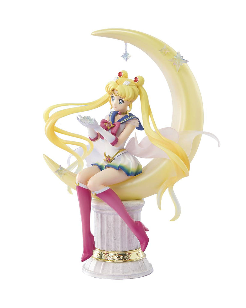 From Tamashii Nations. Figuarts Zero chouette is proud to announce the arrival of Super Sailor Moon, from Sailor Moon Eternal. Seated on a beautiful moon-shaped stand, accentuated by translucent silver crystals and fine detail, bring you right into her gorgeous world.