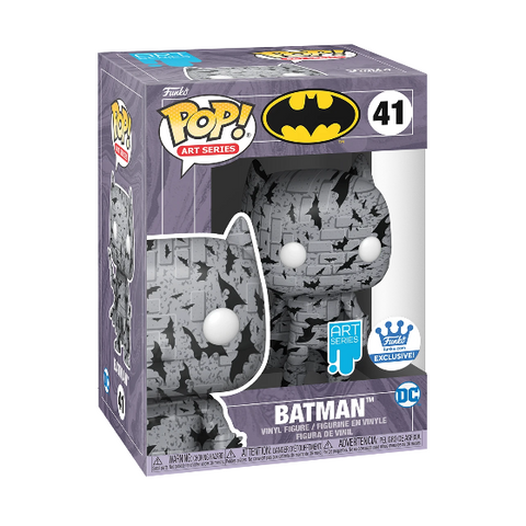 The classic DC Super Hero Batman has been given an artistic twist, coated with a grey brick pattern with black bats scattered about. Add a fresh pop of color to your DC collection with the Funko exclusive Art Series Pop! Batman. Vinyl figure is approximately 4.15-inches tall and comes in a protective case. Please note: Patterns will vary with all-over-print styles.