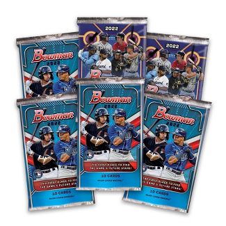 Topps presents the 2022 MLB Bowman mega box! This box includes 4 packs per box with 10 cards per pack. Plus two exclusive 5-card chrome packs for a total of 50 cards!
