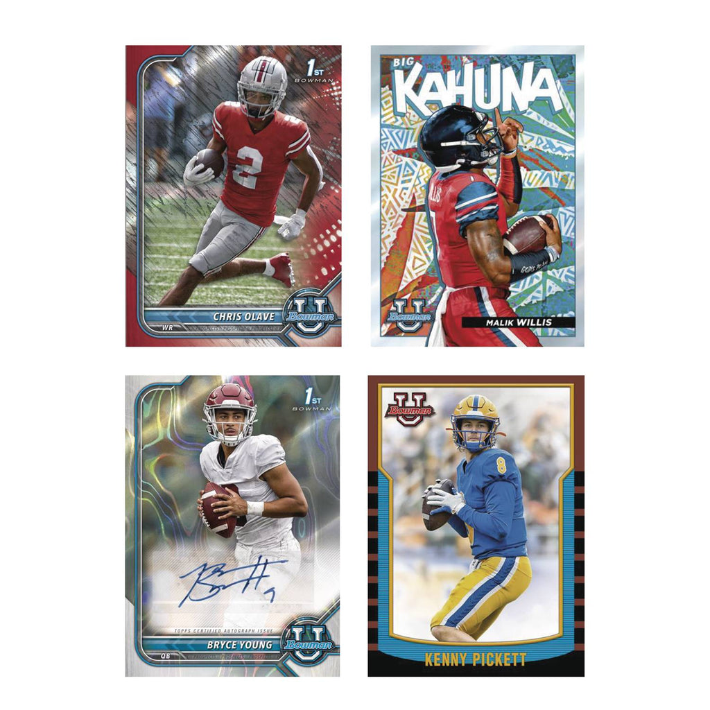 From Topps Company. Brand new to the Bowman family of products, Bowman University debuts with 2021/22 Bowman University Football, featuring a booming list of football's brightest young stars. Complete the 100-card Base Set showcasing top talent from throughout college football, as well as a number of sleek inserts and parallels. Find 2 Chrome Bowman U Autographs per Box!
