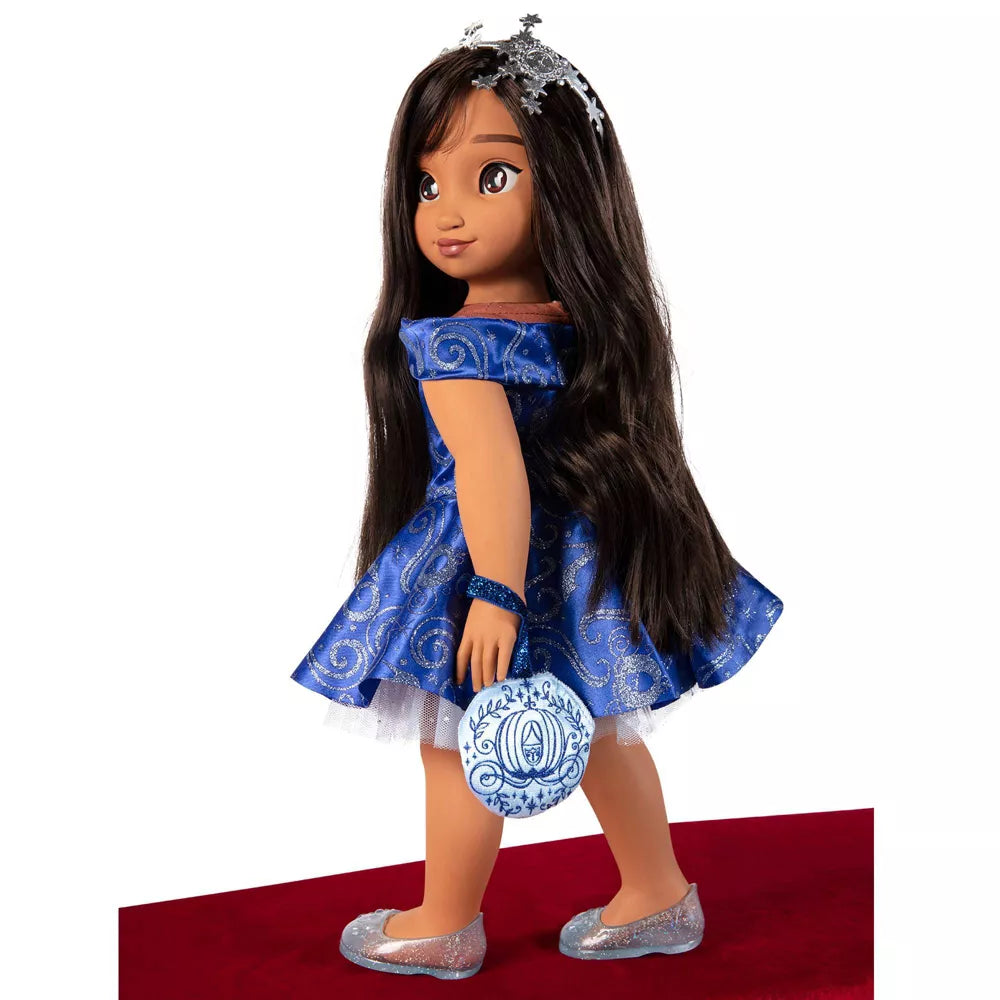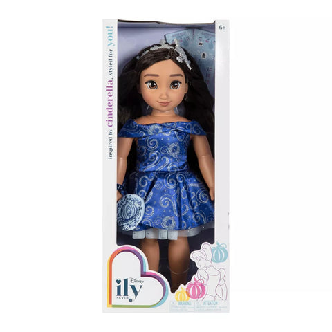 Show off the Cinderella in you with this 18-inch doll from Disney ily 4EVER! Her fashion is inspired by her favorite Disney character, Cinderella, and she is all dressed up for the dance. She has long, straight, brunette hair with golden-brown eyes. Her Cinderella-inspired outfit includes a sparkly blue dress and translucent shoes. A carriage-print purse and silver star-shaped headband completes her look and with tickets in hand, she’s ready to go!