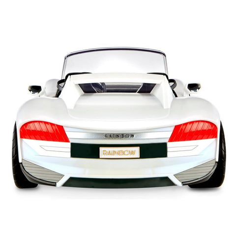 Pull up to Rainbow High in style with the Rainbow High Convertible Color Change Car. Take your favorite Rainbow High Dolls out for a spin. Why settle for one color Car when you can have the rainbow? Rainbow High Color Change Car features a white body with 8-in-1 LED Color Changing Car, black interior with RH logo monogram seats, two-seater sporty convertible that fits 2 Rainbow High Fashion Dolls with working seat belts to keep your dolls safe. The car starts white and then you can choose any color in the rainbow (white, red, orange, yellow, green, blue, or purple) or cycle through all of them! LED color changing lights is easy to operate by pressing the gold button on the hood of the car to select your car color. Each color turns off automatically after 30 seconds to conserve the battery. Turn the corner to get to your fave hang out spot with the working steering wheel and wheels that move. Rainbow High logo details, silver trim accent trim & grill. A personalized license plate adds a signature style. To make it super easy to get your dolls in and out of the car, you can shift the steering wheel up and down, pull the seatbelt out from the waist position, and you can even remove the windshield if you’d like for easy access.