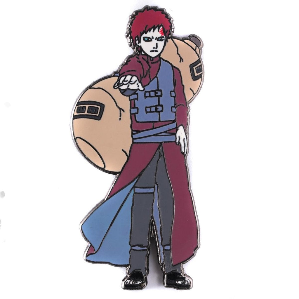 From Pintrill. This Officially licensed Gaara black nickel plated brass pin measures about 0.78" x 1.7" and comes packaged on a backing card with a black rubber pin clutch.