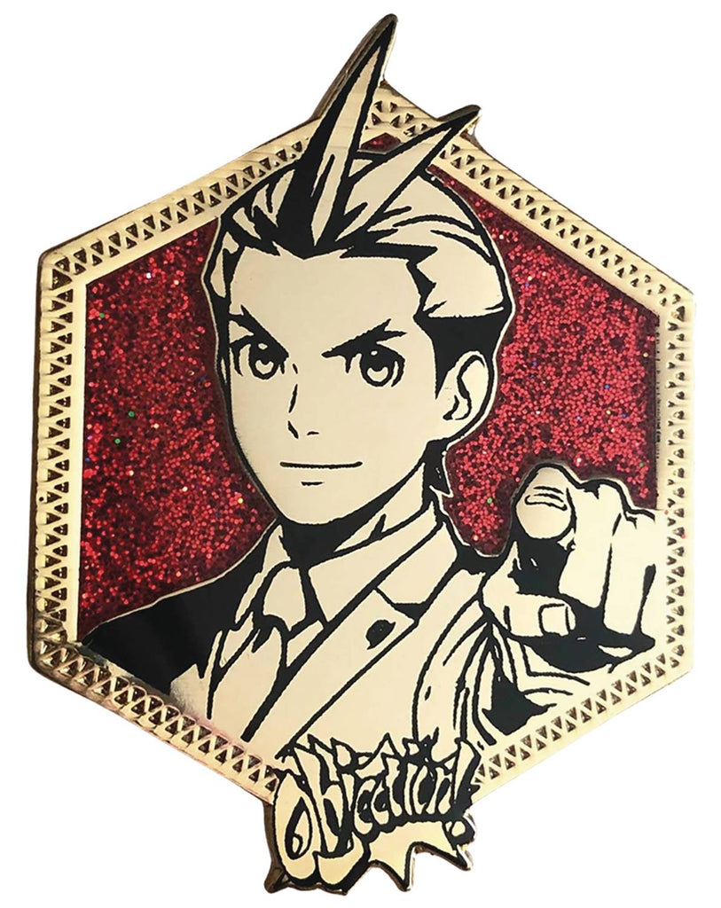 These Official Golden enamel pins with epoxy finish and glitter in measure about 1.50" inches in width and come packaged on a themed backing card. Collect Maya Fey, Miles Edgeworth, Apollo Justice, and Phoenix Wright!
