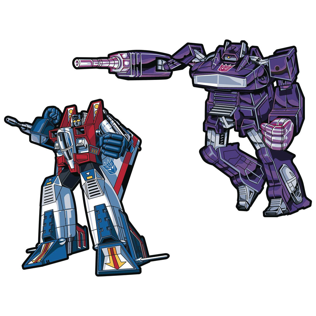 From Icon Heroes. Icon Heroes presents the Transformers Shockwave X Starscream Retro Pin Set! Based on the vintage toy box art, each limited edition hard enamel pin is individually numbered and packaged on a retro-style 6" x 9" card back. The pins and card back are packaged inside a clamshell box to keep them safe and secure when not in use. Collect them all!