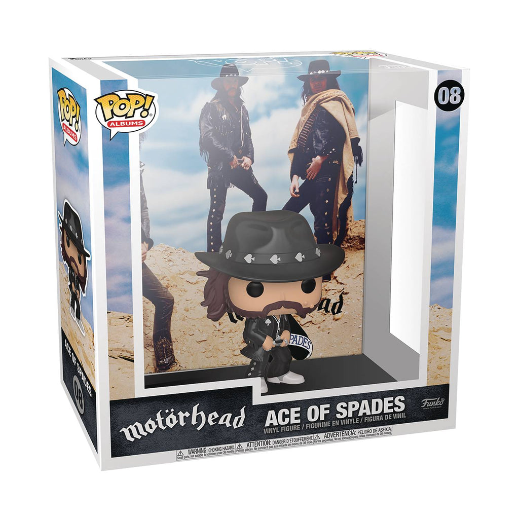 This Motorhead Pop! Album includes a Pop! Vinyl Figure measuring approximately 3 3/4" tall on a backdrop of the famous Ace of Spades album cover!
