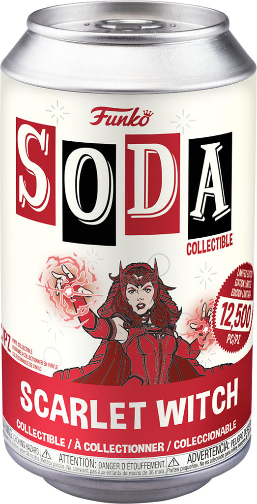Included inside this soda can is a 4 1/4" tall vinyl figure of the Scarlet Witch from WandaVision and a collectible disc. Look out for the chase version!