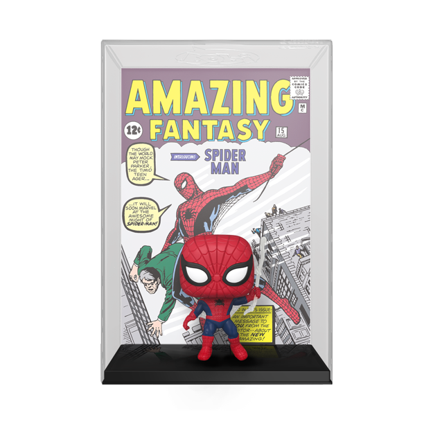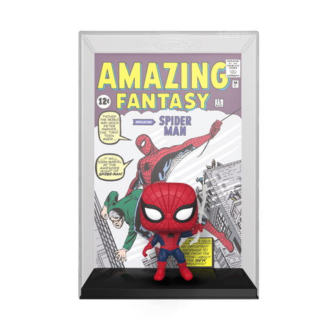 Boost your comic collection by securing this exclusive Pop! Comic Covers which features Pop! Spider-Man and the 1962 Amazing Fantasy Volume 15 cover art packaged together in a protective case that can be hung on a wall. Reel in this iconic comic book cover for your collection with Pop! Comic Covers Spider-Man. Vinyl figure is approximately 4-inches tall. Approximate dimensions of protective case: 7”W x 10.75”H x 3.25”D