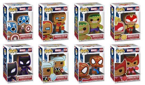 From Funko. Bring some holiday cheer to you Marvel collection with these Pop! Marvel Holiday figures. Each Pop! figure stands about 3 3/4" tall and comes packaged in a window box. Collect Black Panther, Captain America, Captain Marvel, Hulk, Iron Man, Spider-Man and Thor!