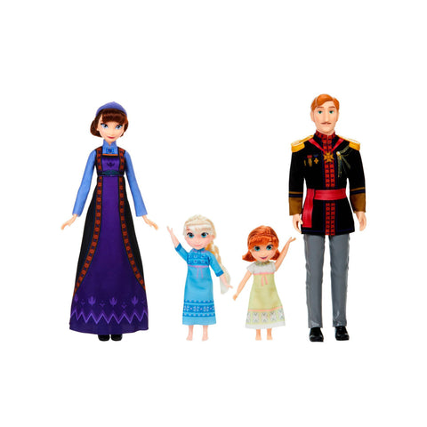 Imagine Queen Iduna and King Agnarr watching over young Anna and Elsa. Kids can recreate family scenes from Disney's Frozen 2 with the Arendelle Royal Family Set, a 4-pack of classic fashion dolls inspired by Disney's Frozen 2. This doll set features favorite characters Anna and Elsa as little kids, plus King Agnarr and Queen Iduna. Each features a movie-inspired outfit and Queen Iduna comes with a pair of shoes. The Anna, Elsa, and Queen Iduna dolls all include rooted hair. And the dolls can sit or stand so kids can make up their own adventures.
