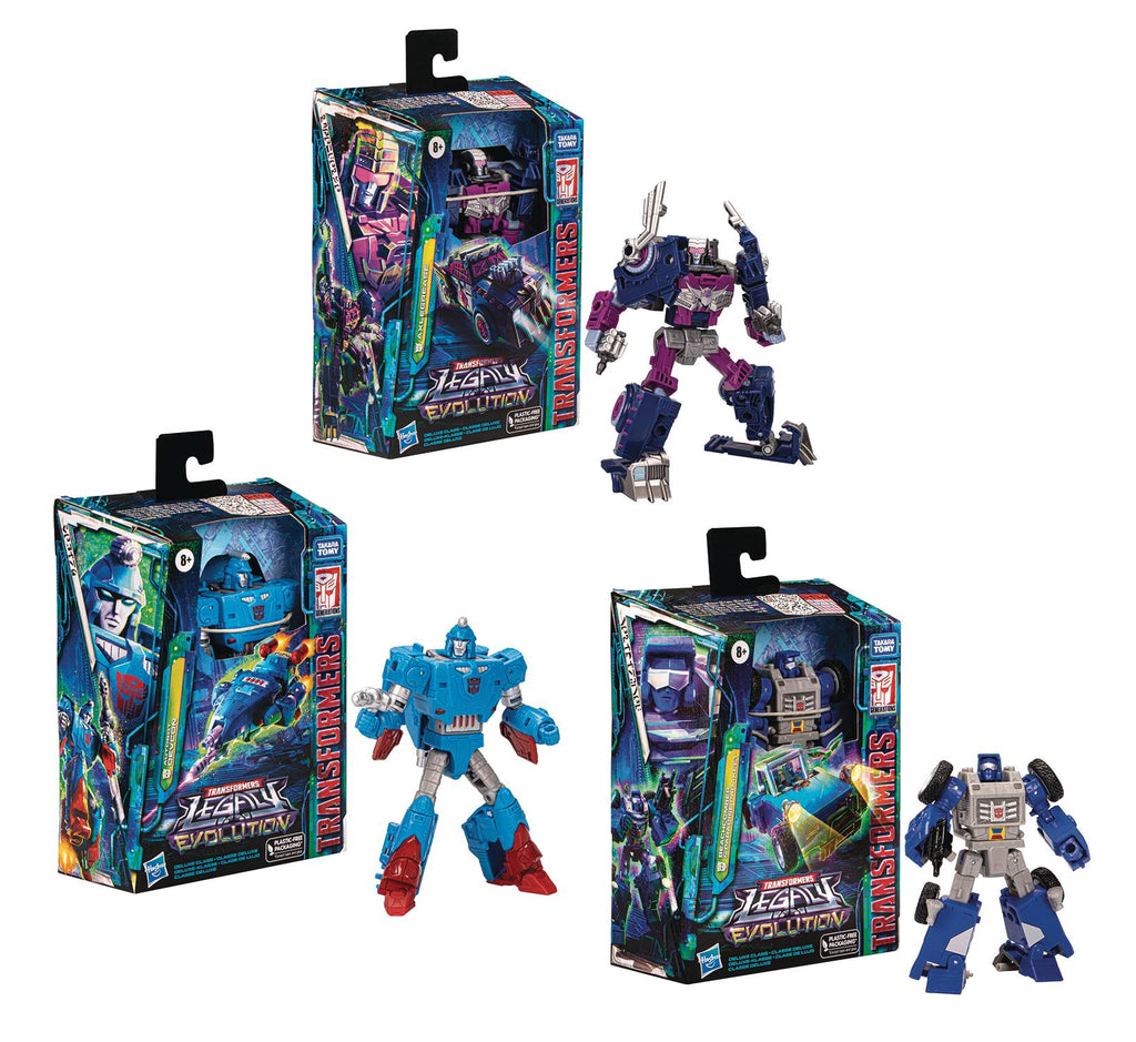 From Hasbro Toy Group. The battle is evolving with the Transformers Legacy Evolution Deluxe Class action figures! Transformers toys are upgraded with Evo-Fusion technology! Experience the evolution by combining and upgrading included accessories to prepare for battle! Celebrate the last 40 years of Transformers history with Transformers Legacy action figures for boys and girls. Transformers Legacy opens the portal to a whole new universe of -More Than Meets the Eye -bringing together every generation of Transformers like you've never seen before. Collect Beachcomber, Devcon, and Axelgrease to create your ideal Legacy lineup.