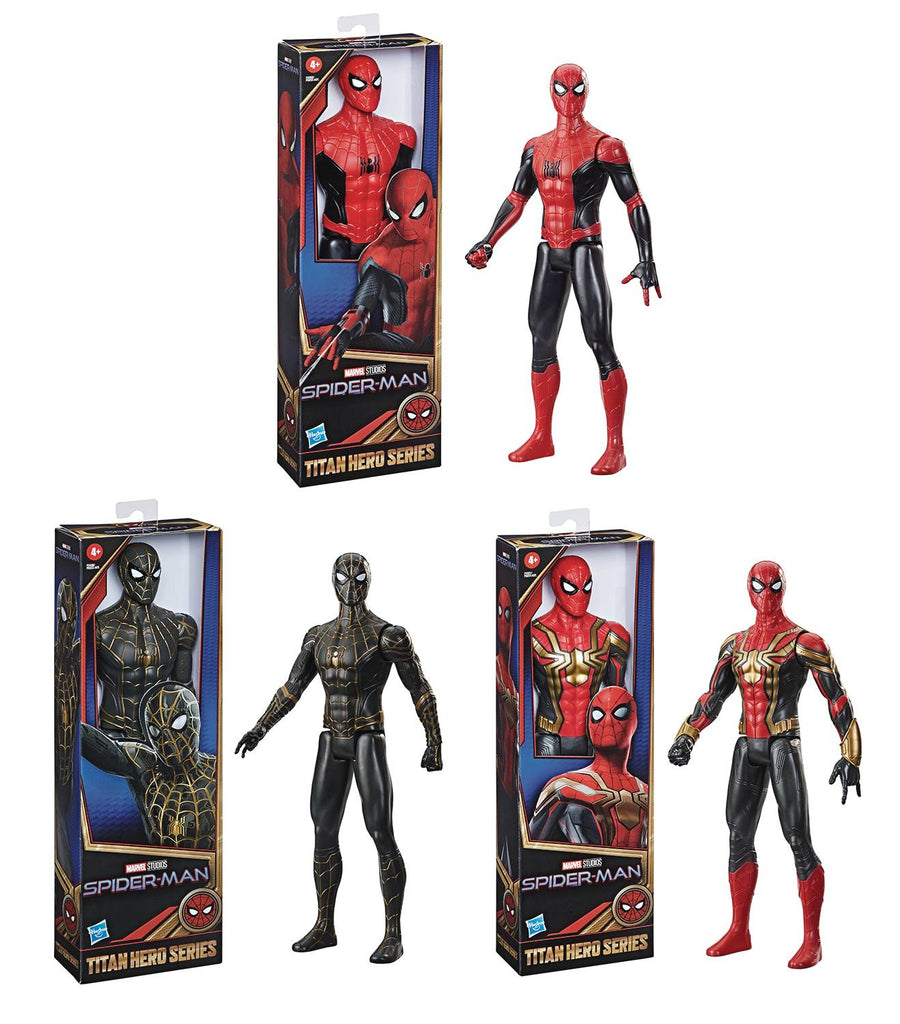 From Hasbro Toy Group. Kids can imagine their own epic adventures with this Titan Hero Series figure inspired by Marvel's Spider-Man movie, part of the Marvel Cinematic Universe. Each Titan Hero figure features articulated arms that allow kids to pose them for action-packed play. Collect Spider-Man in Black & Gold Suit, Spider-Man in Integrations Suit, and Spider-Man in Red & Black Suit!