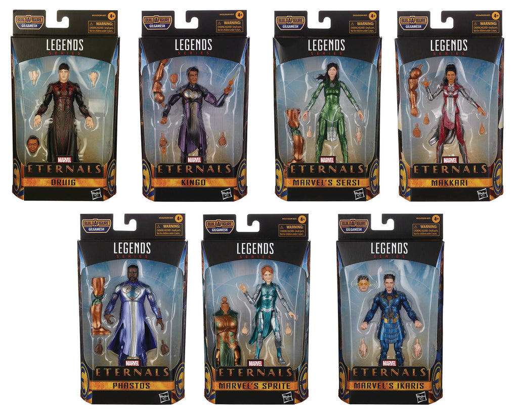From Hasbro Toy Group. With over 80 years of entertainment history, Marvel has become a cornerstone of fan collections around the world. With the Marvel Legends Series, fan favorite Marvel Comic Universe and Marvel Cinematic Universe characters are designed with premium detail and articulation for posing and display in collections. These quality 6-inch Legends Series Eternals figures features multiple points of articulation and character specific accessories. Collect Ikaris, Makkari, Sersi, Phastos, Kingo, Druig, and Sprite! Each figure in the Marvel Legends Series The Eternals collection includes at least one Build-A-Figure piece. Collect them all to create an impressive 6-Inch-Scale Gilgamesh!