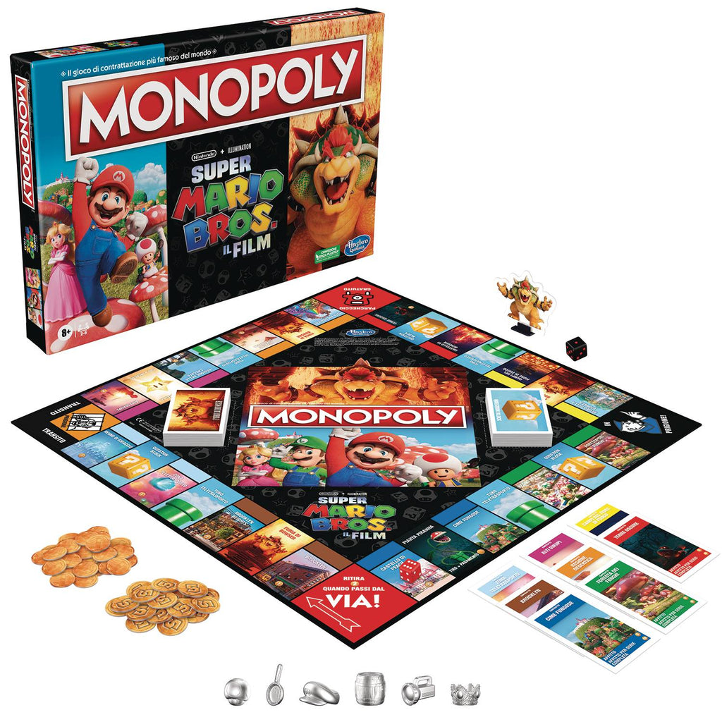 From Hasbro Toy Group. With this action-packed Monopoly The Super Mario Bros. Movie Edition kids board game, fans can explore the Mushroom Kingdom, as they buy, sell, and trade locations from The Super Mario universe! Enjoy iconic Mario artwork, characters, and themes inspired by the film. Gold coins take the place of Monopoly cash in this race to see who can collect the most coins to win. Earn even more by owning matching Property sets. But beware of Bowser, who can swipe properties, steal coins, or send players to Jail! Discover Warp Pipe shortcuts, and gather or lose coins with Question Blocks and Piranha Plants! Super Mario games are exciting gifts for kids, gamers, Mario fans, and Monopoly fans ages 8 and up.