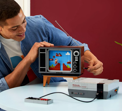 Do you love video games? Did you play Super Mario Bros. back in the day? Or do you just enjoy a hands-on, creative activity in your spare time? If so, this nostalgic LEGO Nintendo Entertainment System (71374) model kit is perfect for you. The brick-built NES is packed with realistic details, including an opening slot for the Game Pak with a locking function and a controller with a connecting cable and plug. The console comes with a buildable retro TV, featuring a flat 8-bit Mario figure on the scrolling screen, plus an action brick to scan with LEGO Mario (figure not included; find in the LEGO Super Mario Starter Course set – 71360) so he reacts to the on-screen enemies, obstacles and power-ups just like in the Super Mario Bros. game. This unique set is part of an inspiring collection of LEGO building sets for adults that make fabulous gifts for yourself and hobbyist friends who enjoy DIY challenges and proudly displaying their creations.