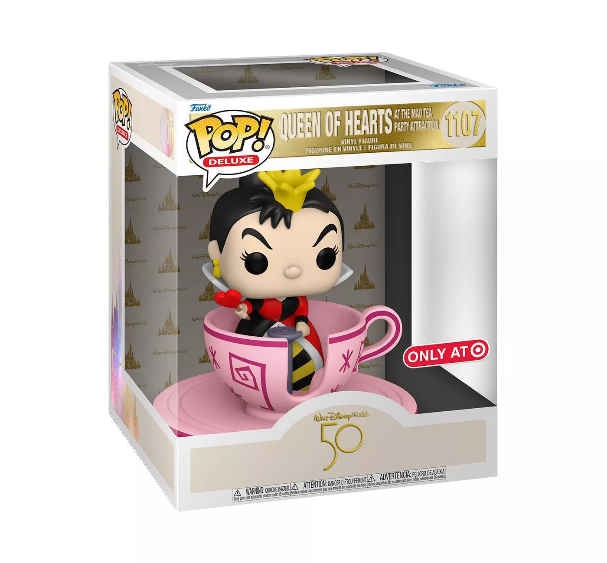 Take the tea party on the go and commemorate 50 years of magic at Walt Disney World Resort with an exclusive Pop! Ride Queen of Hearts at The Mad Tea Party Attraction. This figure of the Queen of Hearts whirling around in a pink tea cup makes a great addition to any Disney collection. Bring Disney home with the new Walt Disney World 50th Anniversary collection! Vinyl figure is approximately 5.5-inches tall.