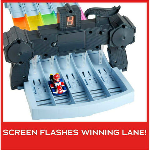 - The track set features a spinning ? Block Item Box randomizer with pop-up features, 3D sculpted figures and decorations that add to the thrills!