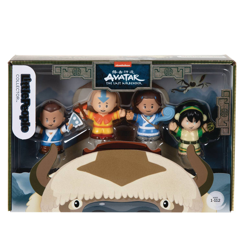 From Mattel Toys. Fans of the critically acclaimed animated series can relive Aang's incredible journey with this Little People Collector Avatar: The Last Airbender figure set from Fisher-Price. This display-worthy set includes 4 Little People figures styled like characters from the show, including Aang, Katara, Sokka and Toph. This must-have gift set comes in a highly detailed package, perfect for any fan's collection.