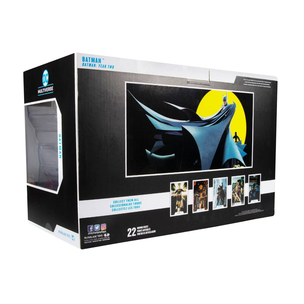 The DC Multiverse 7" Batman Year Two figure from McFarlane Toys is based on Todd McFarlane artwork and features alternate arms and two capes, one hard plastic and the other soft goods. It also comes with the graveyard display base.