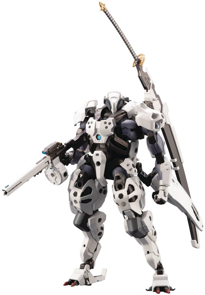 From Kotobukiya. Featuring a cockpit accessible from the back, this humanoid Hexa Gear V-Thor stands at approximately 8" tall. This Hexa Gear boasts the widest range of motion in the series (as of March 2022), allowing the model to hold a large sword in both hands or a rifle like a soldier. Pose this humanoid Hexa Gear any way you can imagine! In addition to the double-jointed elbows, the forward mobility of the chest muscle unit and the universal construction of the hands allow for a wide range of poses. The kit Includes four new hand parts for both the left and right hands: Closed fists, open hands, gun-holding, and sword-holding. The knee joints have double articulation and an interlocking mechanism, the feet have toes that can move up and down, and the thighs are sculpted to show the dense details of artificial muscles peeking through the gaps in the armor. The included HD Plasma Cannon can be attached to the mount on the back and the Hexagram storage can be removed. The barrel can also be replaced to be used as a gatling gun that fires solid bullets. The "Exit Slider" equipped on either sides of the waist can be removed and combined to make a large shield. This shield can also become a high-speed transportation board that can be attached to the feet by swapping out some parts and utilizing the slide feature. Larger than the model itself, the Mega Charged Tactical Sword can be removed from its sheath. With a total length of 11", this sword is currently the longest melee weapon in the Hexa Gear series. The abdomen is a composite of multiple joints, allowing it to move back and forth, left, and right, and the waist can also be rotated. Governors supported are: Pawn A1, Pawn X1, Sentinel, Warmage, Early Governor Vol. 1. Note that not all governors are supported. The kit includes joints for the Flying Base Neo (sold separately). Seven-color Scheme: White, Gun Metal, Dark Gray, Blue Gray, Silver, Gold, and Clear Blue."