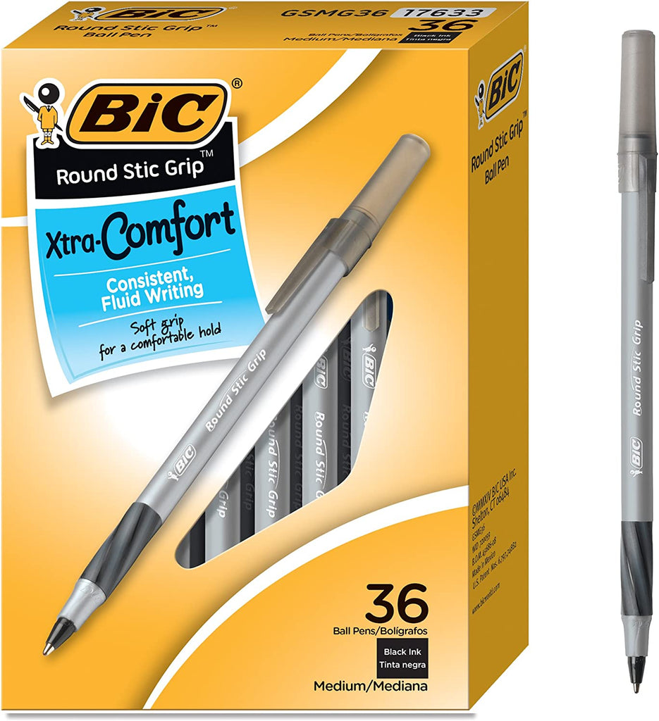 Featuring a soft grip for added comfort and control, the BIC Round Stic Grip Xtra Comfort Ball Pen is designed for hours of comfortable writing, note-taking, or brainstorming sessions. The 1.2mm medium point offers the versatility needed to tackle a variety of writing applications. These pens feature Easy-Glide System ink, a proprietary technology that delivers exceptionally smooth writing and creates bold lines. (Easy-Glide system ink offers up to 50% smoother writing and bolder ink than our traditional ballpoint ink, and is only available in medium point with black, blue, red, or green ink). BIC Round Stic Grip Xtra Comfort Ball Pens are ideal for everyday use and are non-refillable.