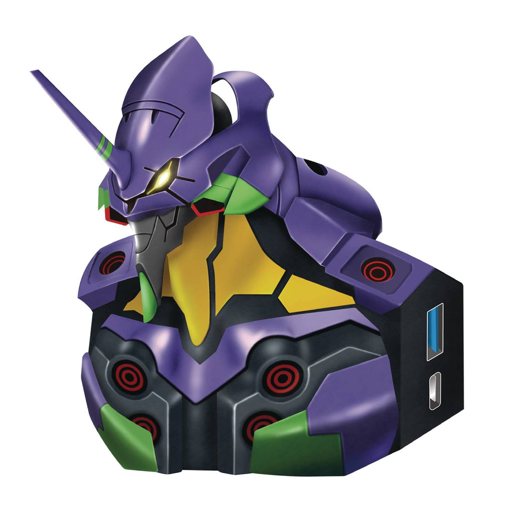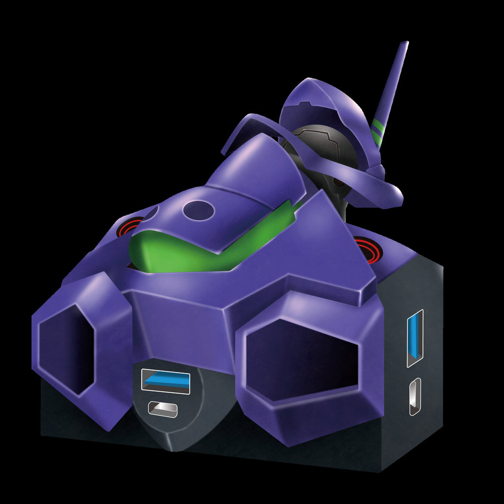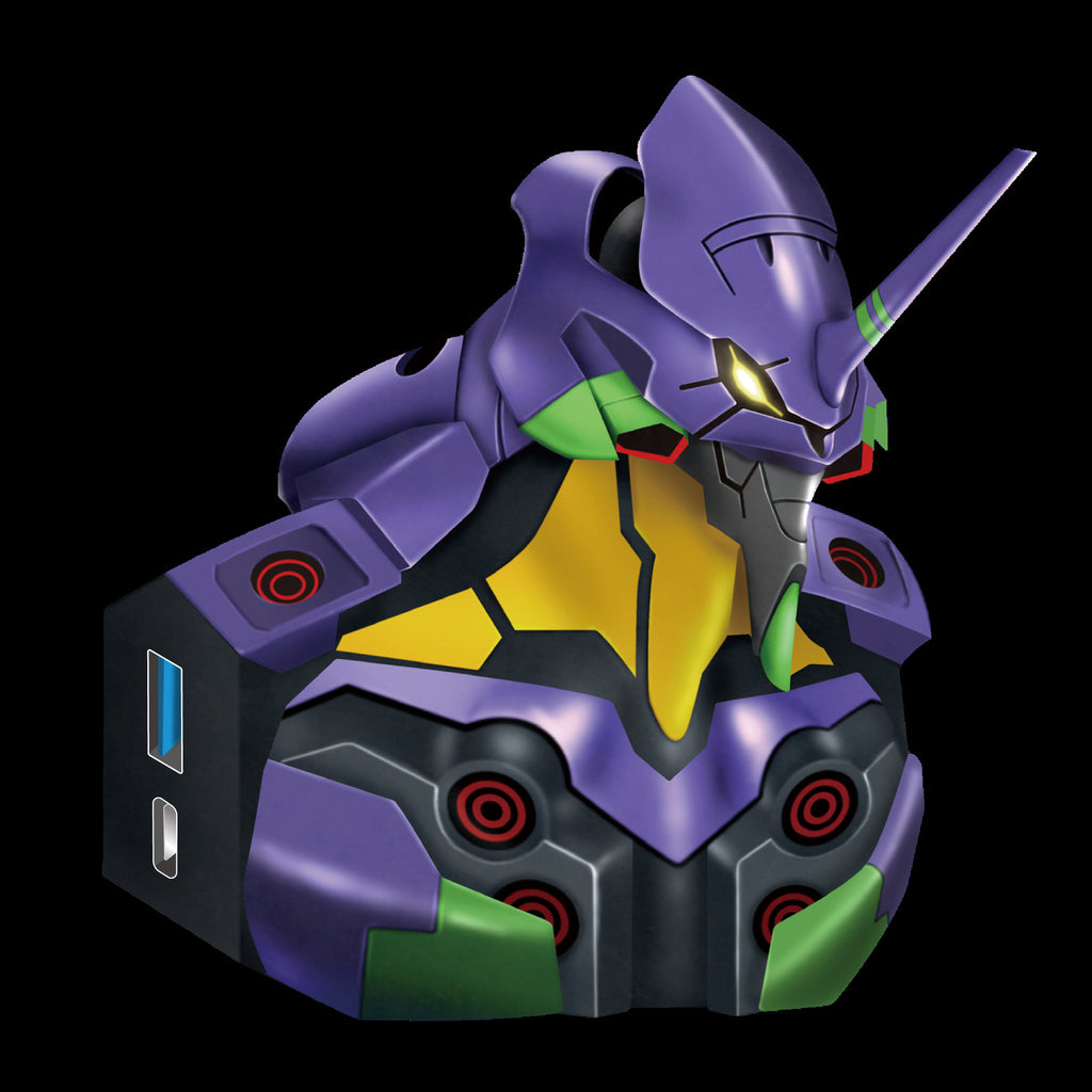The Evangelion Unit-01 USB hub comprises of the chest and up. When plugged in, its eyes light up!
