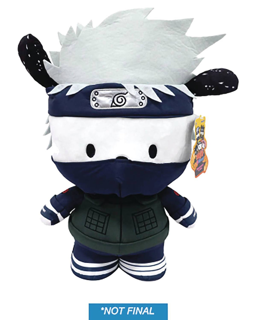 From Kid Robot. Kidrobot brings art to life with Naruto Shippuden x Hello Kitty and Friends in a new Naruto 20th Anniversary collection! This Naruto x Hello Kitty 13-inch Plush is dressed in Kakashi cosplay for the must-have mashup of the year.