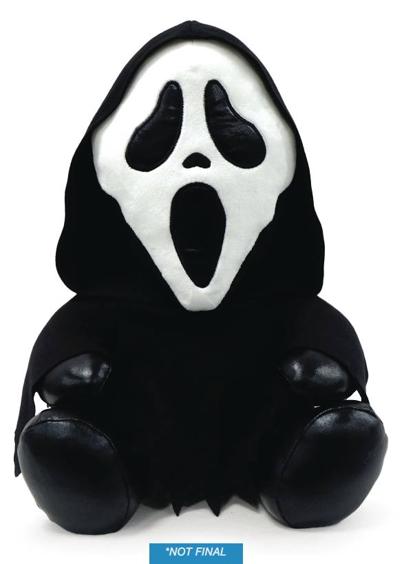 From Kidrobot. Shake action when you hug it! Shake action when you clap! This cuddly version of the famous slasher will make you scream...with delight! The Ghost Face HugMe Shake Action Plush is an extra huggable 16-inch-tall plush complete with Kidrobot's signature squeeze-sensitive vibration feature. Batteries included.