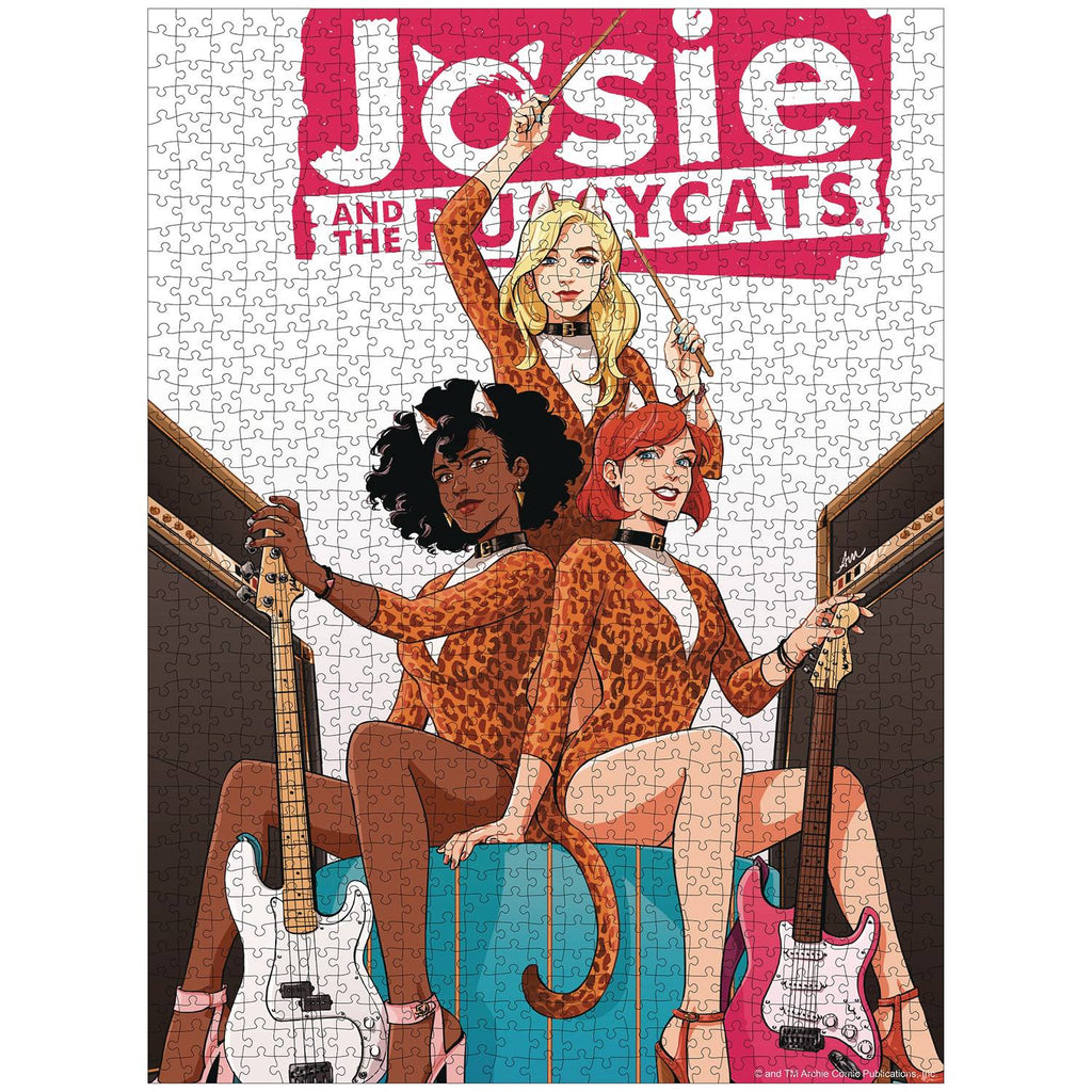 Based on the cover of Josie and the Pussycats issue #1 by Marguerite Bennett, Cameron Deordio, and Audrey Mok, this puzzle measures 20" wide x 27" tall.  Stimulate the mind with this fun activity alone or with friends and family, and get ready for hours of mind boggling fun!