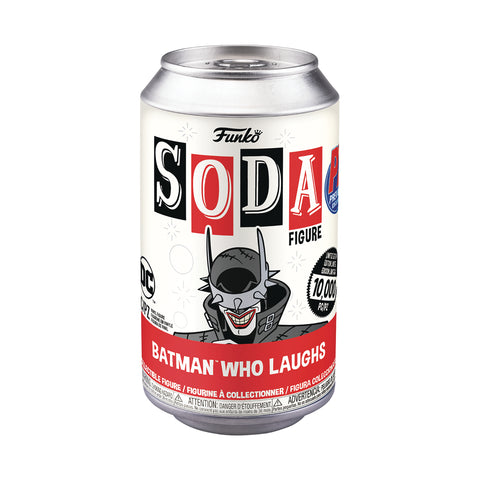 A PREVIEWS Exclusive! A Batman who laughs... is a Batman who always wins! Add a refreshing twist to your DC collection with the Funko SODA Batman Who Laughs! It looks like a can of soda pop, but inside the can, fans will find a limited edition 4 1/4-inch tall vinyl figure of the toxin-corrupted Batman Who Laughs from the Dark Multiverse and a collectible disc. Plus, look out for the one in six limited variant glow-in-the-dark chase version to hunt for and collect! Quantities of this PREVIEWS Exclusive Figure are limited to 10,000 pieces, so don't miss out! Allocations may occur.