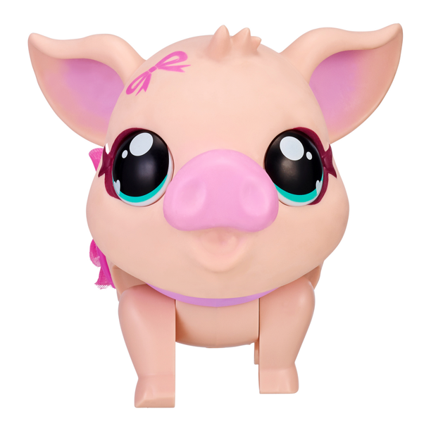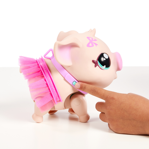 Who's cuter than a kitty and more playful than a puppy? New from Little Live Pets, Piggi Bella is your new pet pig! Piggi Bella adores ballet and looks beautiful in her glittery tutu and bow!With over 25+ sounds and reactions, Piggi Bella moves and sounds just like a real baby pig. Feed her with her bottle and give her a cuddle as she reacts to your touch. Pick her up and touch her snout to your nose and she will give you a sweet kiss! Piggy makes so many funny and sweet sounds - she oinks, feeds, giggles, burps, sniffs, sneezes, and may even let out a cute fart, too!Piggi Bella has super soft skin and floppy ears that jiggles when she moves. Walk her on her leash or watch as she moves and dances to her own music tunes.Piggi Bella comes with a detachable walking leash, a bottle, an instruction booklet, and batteries are included so that she is ready to play with you!