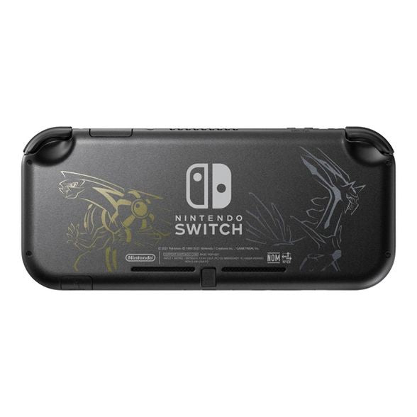 This Nintendo Switch Lite system is the first to feature a metallic gray body with black buttons. The back features striking line art of the Legendary Pokémon Dialga and Palkia from the Pokémon™ Brilliant Diamond and Pokémon™ Shining Pearl games in a silver-colored and gold-colored finish.
