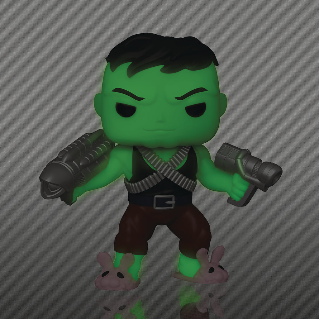 Crashing into your Funko family, it's Professor Hulk! This 6" PREVIEWS Exclusive Pop! Vinyl figure reproduces the iconic Professor Hulk as he appears in The Incredible Hulk #377 written by Peter David and illustrated by Dale Keown and Bob McLeod, down to his fuzzy pink bunny slippers! Plus, this figure features a Glow-in-the-Dark chase version to really ramp up the radioactivity in your collection! Professor Hulk comes in a jumbo-sized window box, perfect for collectors, so don't miss out!