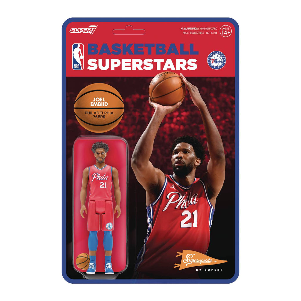 From Super7. No need to get defensive, Philadelphia 76er Joel Embiid makes a strong statement to be the center of any NBA collection. This 3.75" scale articulated Joel Embiid Supersports figure features the red Philadelphia 76ers Statement Edition uniform and comes with a basketball accessory. Joel Embiid and the rest of the NBA Supersports Statement Edition collection are an outstanding way to start or add to your roster!