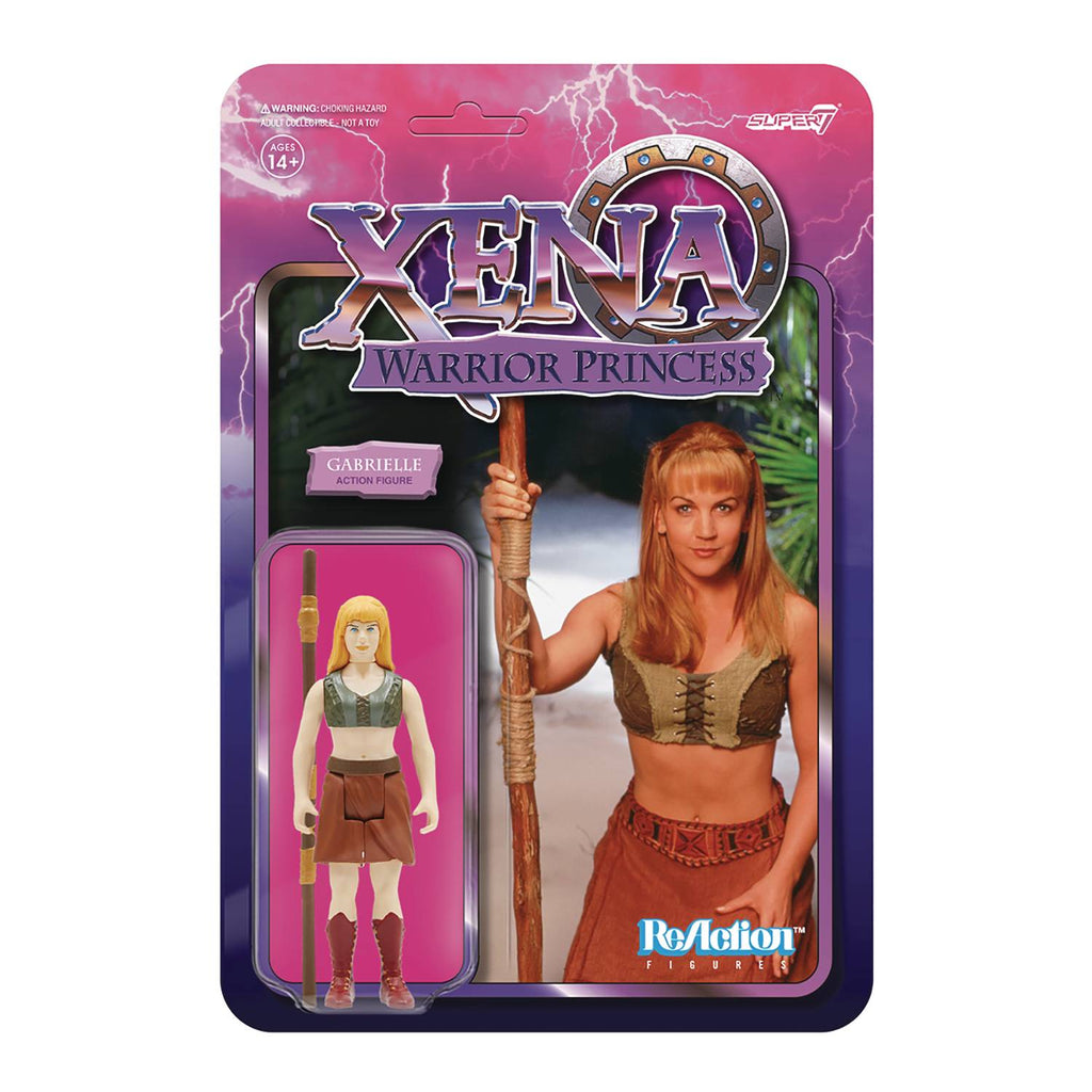 From Super7. She may have grown from farm girl, to bard, to formidable warrior, but Gabrielle's most important role is that of friend and moral touchstone for Xena, helping keep her on the path of the good and the just. This 3.75" articulated Xena: Warrior Princess ReAction figure of Gabrielle looks equally ready to offer prudent counsel or take a more forceful approach to any would-be ne'er do wells, and comes with fighting staff accessory. The Gabrielle ReAction figure is a must-have for any Xena: Warrior Princess fan!