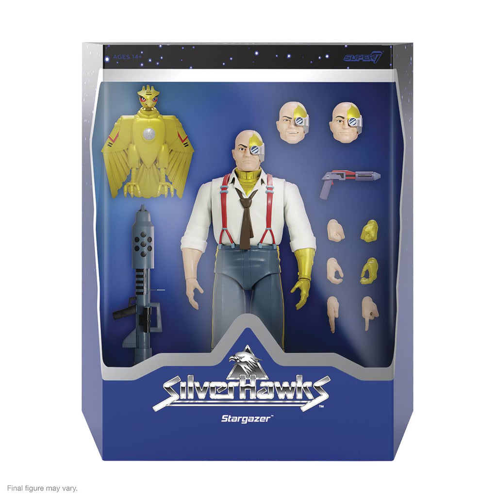 From Super7. He's been fighting crime in the Limbo Galaxy for over 300 years and there's no way Commander Stargazer is going to sit back and let Mon*Star and his cronies run amok on his watch! This 7" scale highly-articulated SilverHawks ULTIMATES! figure of Commander Stargazer features detailed sculpting and includes interchangeable heads & hands as well as a variety of accessories suitable for a no-nonsense galactic law man. This dedicated crimefighter is the force that keeps the SilverHawks on-task and hot on the heels of galactic criminals, and adding this made-to-order ULTIMATES! figure of Commander Stargazer can keep your collection at its best!