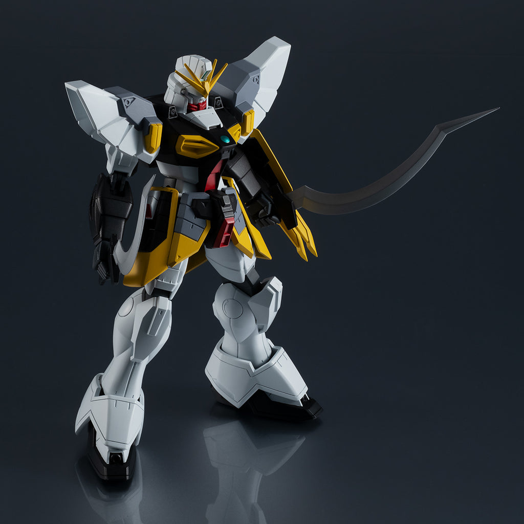 Comes with a large shield and Heat Shotel for dynamic attack-scene poses. Display alongside the Gundam Universe Gundam Wing (sold separately) to expand your play possibilities!