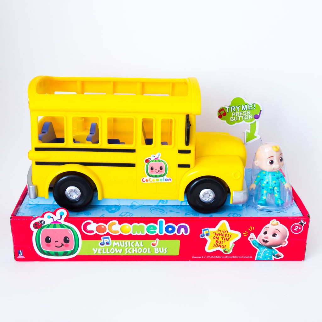 The CoComelon Musical Yellow School Bus comes with a figure of JJ, a popular character from the educational CoComelon YouTube series!
