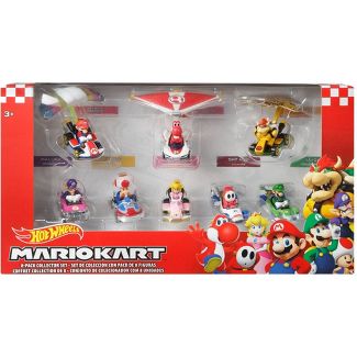 Kids can choose their favorite Mario Kart characters and speed off for racing and stunting madness with a Hot Wheels 1:64 scale die-cast vehicles with glider attachments just like in the video games! There are 3 characters with gliders including an exclusive Red Yoshi, P-Wing Super Glider, Mario with a standard kart and Parafoil Glider plus Bowser with a Kite Glider. Rounding out this awesome bundle are 5 die-cast karts! Power up their imagination when they select their favorite player among the fan-favorite iconic Mario Kart characters. Simply detach the glider attachment to make the vehicle work on Hot Wheels track for the hands-on thrill of Hot Wheels performance and the challenge of in-game Mario Kart action. Each sold separately, subject to availability.​