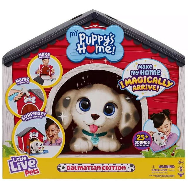 Now your child can make a home that is truly magical! Little Live Pets - My Puppy's Home - Dalmatian Edition allows kids to build a house that when complete delivers the cutest surprise in the form of an adorable pet Dalmatian puppy! My Puppy's Home comes as a flat pack with all the tools and parts your child needs to construct a cute little doghouse. After the walls and roof are put together, it's time to lay out the welcome mat and fill their puppy's water bowl. Kids will be amazed when they see cute little paw prints magically appear on the mat! Wow! It looks like someone has just arrived! There's just a couple more things to do - name your puppy and attach their name to their kennel. Now it's time for the real surprise to happen.